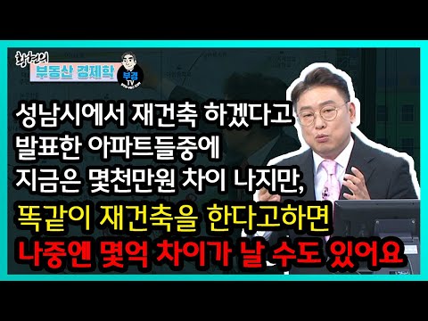 성남시에서 재건축 하겠다고 발표한 아파트들중에 지금은 몇천만원 차이 나지만, 똑같이 재건축을 한다고하면 나중…